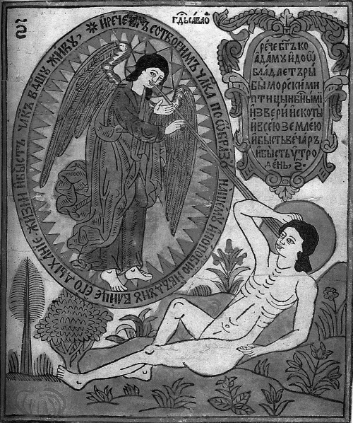 Сотворение человека. Библия Василия Кореня. /696 г.