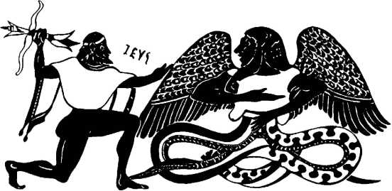 В античной религии это пока еще смутное ощущение божественности разума и духа выразили сказания, во многом похожие на мифы Вавилона, Египта, Ханаана. Если на Востоке Мардук, Ра, Ваал-Хадад поражают чудовищ, то у греков мы видим дружину Зевса, низвергающую в бездну титанов и гигантов, и Аполлона, расправляющегося с драконом.
