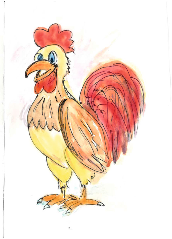 И вот однажды, когда Артём замешкался, обувая кроссовки, Дружок первым выбежал во двор и сразу же попался на глаза Пете. Тот недолго осматривал нового жителя их двора. Убедившись, что никого из взрослых рядом нет, расставив крылья и прокричав «Кукареку!», он бросился на щенка. Тот начал спасаться бегством и, скуля, побежал домой – к Артёму. Заскочив в дом, подумал, что он в безопасности. Но не тут-то было! Петух ворвался следом, клюя и Дружка, и защищавшего его Артема.