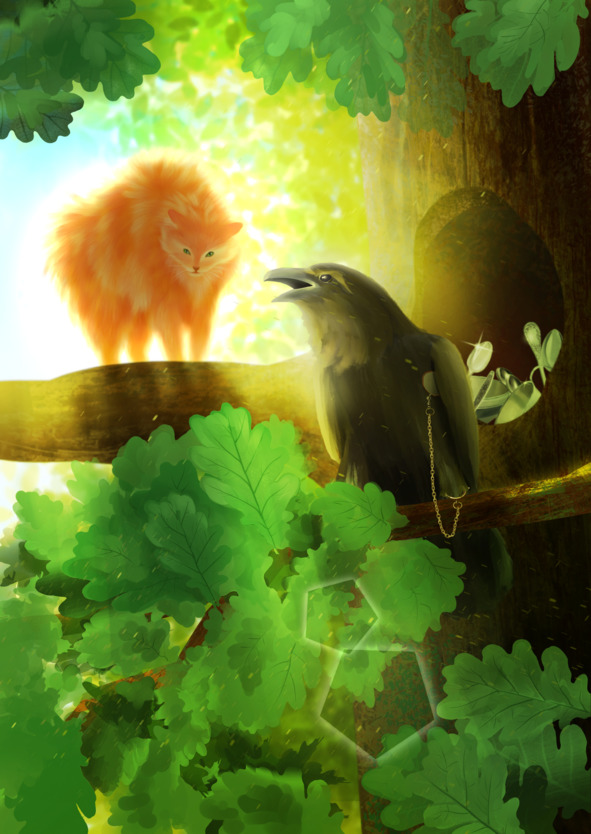 Но тут в дверях показался большой рыжий кот, который инспектировал свою территорию, и, увидев ворона, сказал: