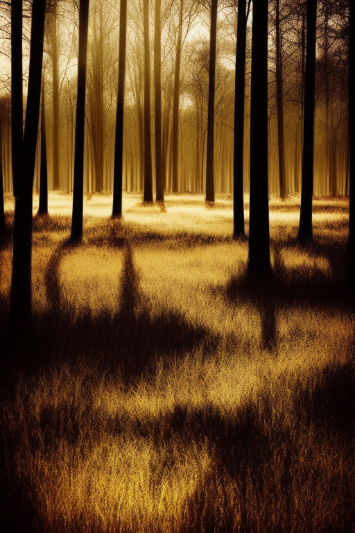 Было достаточно темно, как перед грозой, но всё было отлично видно. И чёрно-жёлтое небо, что чем выше от горизонта, тем сильнее напоминало открытый космос. Нет, звёзд не было, не было и какого-то холода или дискомфорта. Просто небо было чёрным, а облака ярко-золотистыми. В них спряталось чернеющей кляксой солнце, обрамлённое жирной золотой оправой. И трава, трава была по форме похожа на земную, только насыщенно-золотого цвета. Деревья, что стояли вокруг тоже были чёрно-золотого цвета.