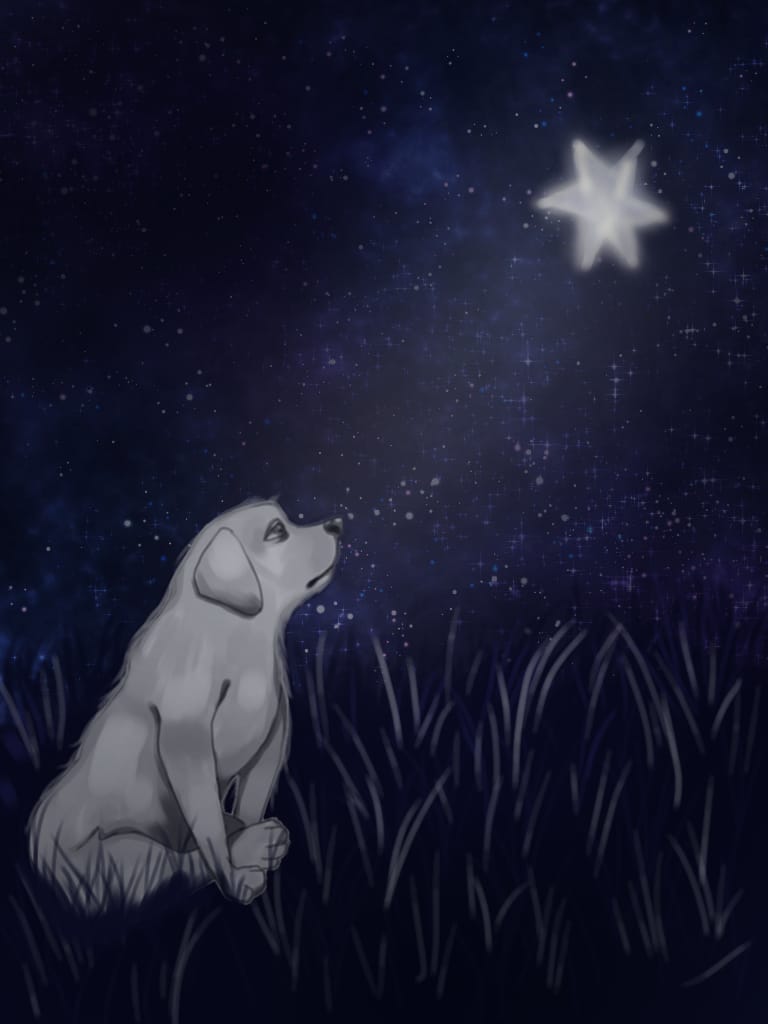– Я хочу увидеть звезду Иисуса! Надо желание на Рождество загадать! – мальчишка вприпрыжку спустился по лестнице и распахнул дверь подъезда. Холодный воздух взбодрил Егора. Мальчик с интересом смотрел на небо. Христос – твоя звезда самая яркая…где?! Стены домов не позволяли хорошо видеть всё небо. Егор решил обойти весь двор и увидеть больше звёзд. Там высоко должна быть одна – она заветная. Если в Рождество желание загадать, то непременно сбудется. Торопиться нельзя. Такая возможность раз в году. А уж сколько добрых дел Егор сделал. И родителям помогал, и учился хорошо, и книжки читал, и бабушке с дедушкой продукты носил… Внезапно мальчик споткнулся. Немудрено, когда смотришь в небо, а не под ноги. Больно! Егор поднялся и отряхнулся, постучал забавно о землю сапогами. «Мне показалось, или кто-то скулит?» – подумал про себя мальчик. Он стал разглядывать сугроб и увидел маленький живой комочек. Щенок? Совсем белый, как снег.