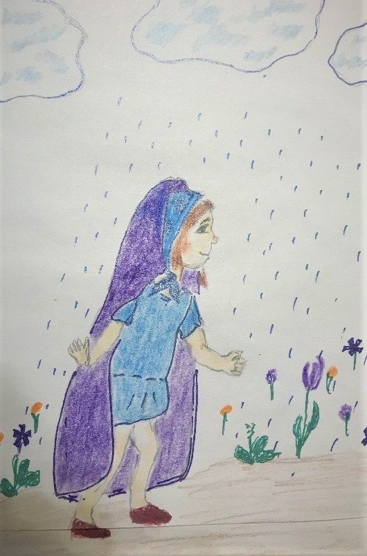 Варвара бежала очень быстро. В дорогу её собирали всем селом. Красные крепкие башмачки не боялись луж и грязи. Плащ-непромокайка помогал сохранить тепло и остаться сухой. Цветы василька на косынке делали девочку незаметной в поле для недругов. Деревянный крестик на груди придавал крепость духа. Без Божьей помощи никак!