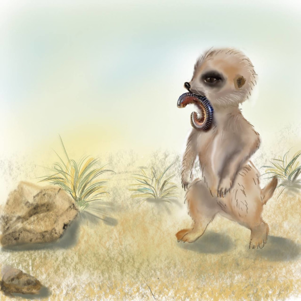 Семья сурикатов обитала на открытой равнине, где почти не было деревьев, зато здесь в изобилии водились вкусные насекомые, ящерицы, змеи, скорпионы и пауки, последних Оби любил больше всего. Обычно они с братьями бродили вокруг норы и искали, чем бы полакомиться. Когда он находил трещину в земле, то принюхивался, и если до его ноздрей доносился запах съестного, Оби раскапывал трещину, хватал передними лапами прячущегося там жука или многоножку и уплетал за обе щеки. Что за чудесная жизнь!