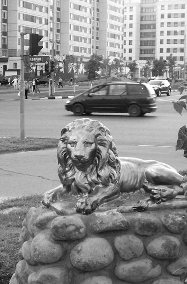 Здесь открылся «Паттерсон»,Поликлиника, аптека,Есть «Авоська» и «Копейка».На столбах часы, реклама,Сквер – большая панорама.Вдоль аллей скамеек ряд,«Как прекрасно!» – говорят.Арку львы здесь охраняют,Всех детишек привлекают.Черепаха, слон и мишка.Он наверно – шалунишка,Средь грибов сидит и млеет,От жары большой балдеет.А вокруг шумят машины,Шепчут в спешке что-то шины.Люд спешит туда-сюда.Райский угол – господа!«Жить, да быть – не тужить…»