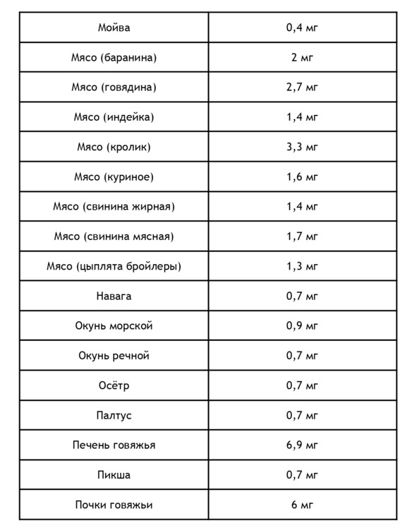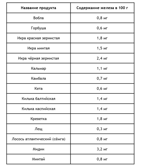 Для повышения уровня железа в крови необходимо употреблять продукты питания, богатые железом. Как известно, железо может быть в гемовой (содержится в продуктах животного происхождения) и негемовой форме. Ниже в приведен список продуктов животного происхождения, содержащих железо, из расчета на 100 г20: