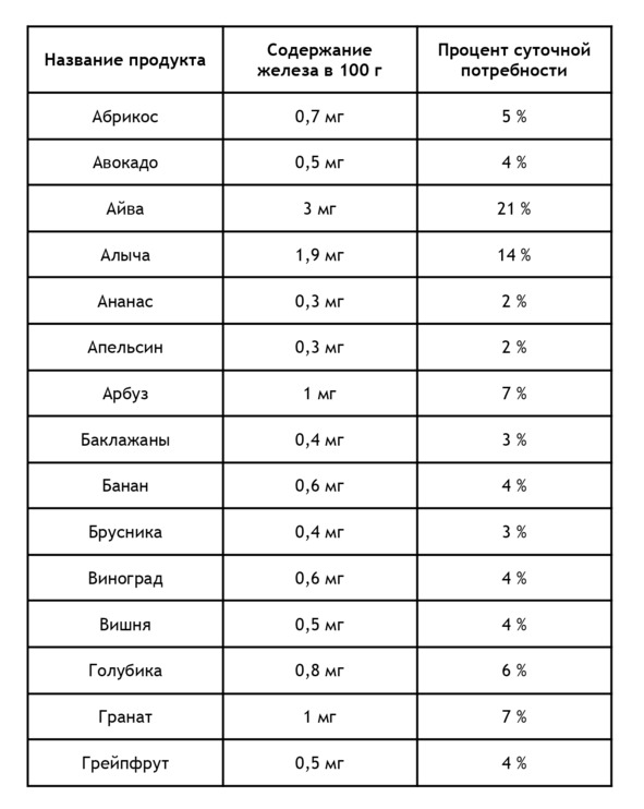Ягоды с высоким содержанием железа из расчета на 100 г и процент суточной потребности22: