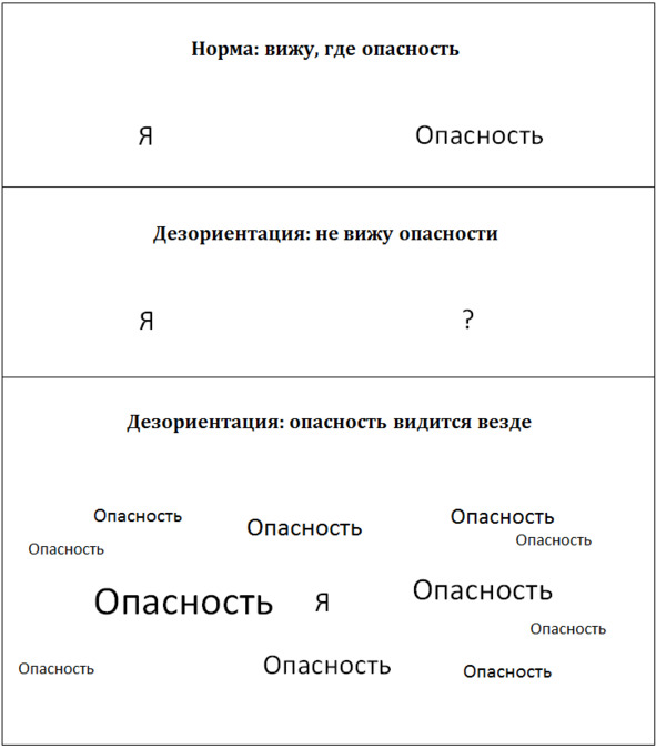 Норма и два варианта дезориентации при подавлении страха