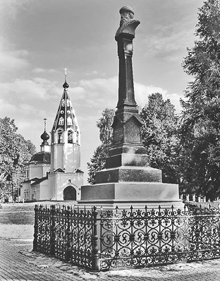 На Соборной горе стоит один из самых старых монументов Плёса: единственный в России памятник московскому князю Василию I, сыну Дмитрия Донского.