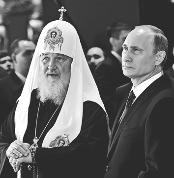 Патриарх Кирилл и В. В. Путин на выставке «Романовы». 2013.