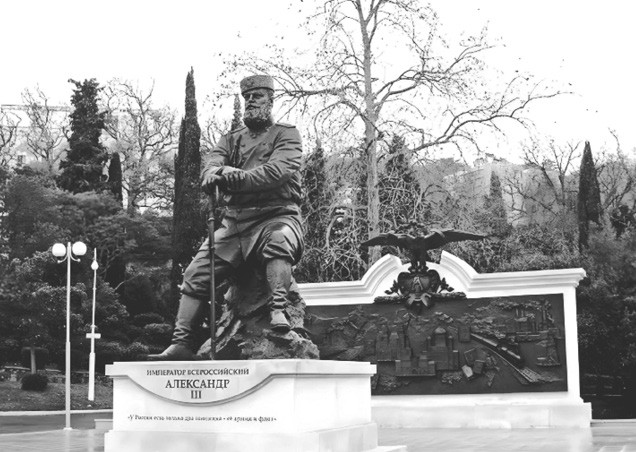Открытие памятника российскому императору Александру III состоялось 18 октября 2017 года в парке Ливадийского дворца-музея. Памятник установили на месте Малого дворца, где всегда останавливался Александр Александрович.