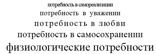 Обычно общечеловеческие потребности представляют в виде пирамиды, выстроенной снизу вверх по степени насущности их удовлетворения: