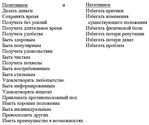 Исходя из этих основных потребностей, человек всегда испытывает желание получать позитивное и избегать негативного: