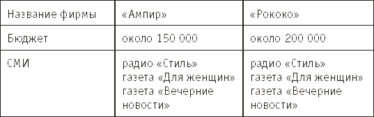 «Для того чтобы привлечь новых покупательниц духов в магазины компании “Барокко” и одновременно противостоять рекламе конкурентов компаний “Ампир” и “Рококо”, необходимо воздействовать на женскую аудиторию газеты “Вечерние новости”, составляющую 15 000 человек.
