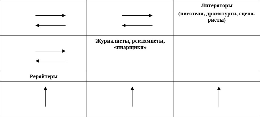 Таким образом, наверху профессиональной «лестницы» копирайтинга стоят литераторы, на средних ступенях – журналисты, рекламисты, «пиарщики», на низших – рерайтеры.