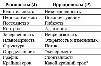 Если вы, прочитав оба перечня, все еще не уверены, какому из них отдать предпочтение, то вы, скорее всего, иррационал, так как рационалы склонны принимать решение еще до того, как закончат чтение вопроса.