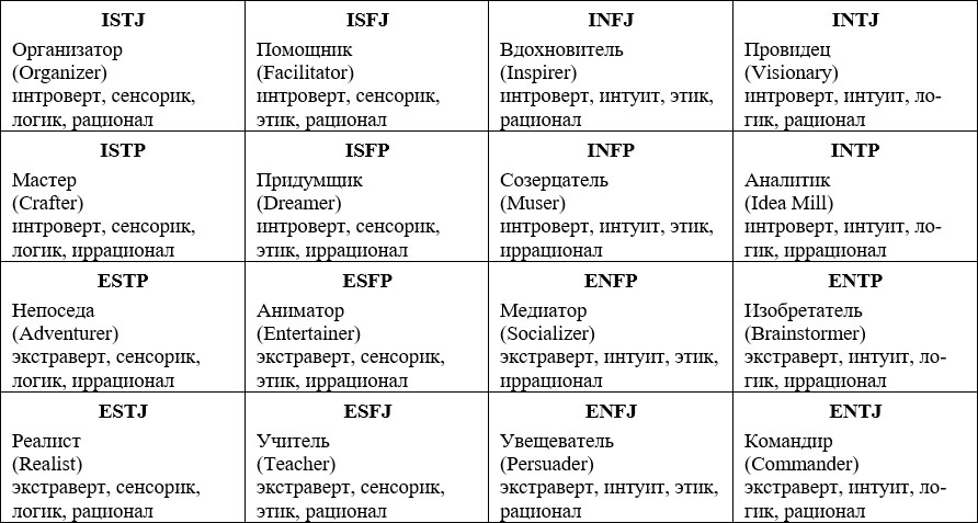 Получив четырехбуквенную комбинацию предпочтений, вы узнаете, какой у вас тип личности и стиль креативности: