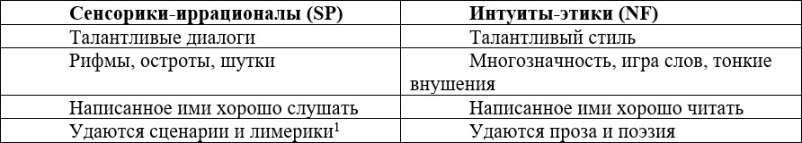Экстраверты SP обычно пишут в стиле разговорной речи, включая жаргонные словечки и отсылки к поп-культуре.