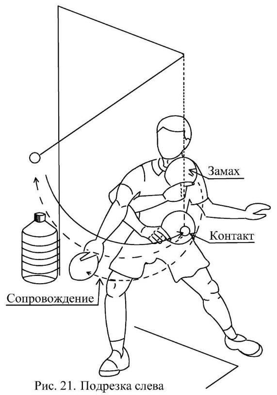 Подрезкой слева принимаются мячи, приходящие левее средней линии стола.