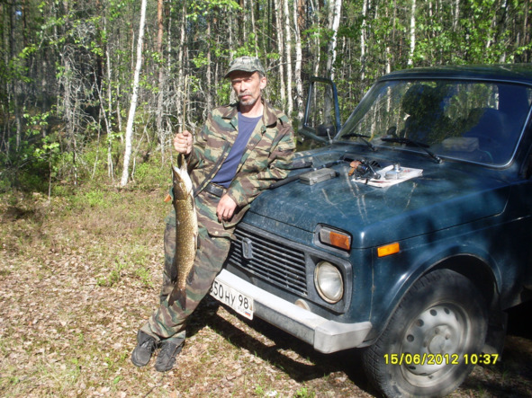 В 17.00 выехали за границу города, примерно в 21.00 приехали на ППН в Гимолах, пробег около 250 км. Бивак на старом месте. Озеро Сурьярви. За вечер-ночь Емельянов Володя поймал 2 щуки, не очень больших размеров, но очень вкусные, после зимы. Это первые рыбины, в том сезоне, поэтому они настолько долгожданные, что мы разглядываем их с нежностью и трепетом, гладим пальцами, аромат рыбы позабытый, но столь приятный, ведь это запах и тяжесть рыбы добытой собственными руками. Делаем лагерь, я ставлю палатку, Лёша привыкает к кочевой жизни. Ночью после 02.00 пошёл дождь. Теперь гремит струями воды по тенту палатки и не утихает, периодически гремит гром.