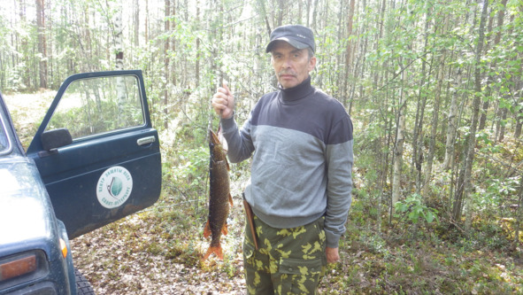 На озере Симоньярви ЕВН выловил две щуки, хороших по размеру, ну одна точно. Сперва мы ездили по пожару, я заходил в выдела и смотрел санитарное состояние. Тут и вопросы, тут и ответы. Из животрепещущего. Не берусь говорить про всю территорию, но в тех местах где был ситуация следующая. Лесной пожар 2010 года по сосновым молоднякам. Частично впоследствии создавались лесные культуры коридорным способом. Среди сухостоя разрубались коридоры, в которые садились сосновые культуры. Всё вроде хорошо, да вот только оставшаяся часть погибшего насаждения продолжает стоять. Т.е. полной расчистки не было, вырублено 20—30% (плюс-минус). И вот тут вопрос. А можно ли сказать, что проведена уборка захламлённости и созданы культуры коридорным способом, можно ли сказать, что в насаждении проведено лесовосстановление и провести списание погибшей площади из формы 1-ОЛПМ, ведь основная часть насаждения стоит?! И никто не может дать ответ. К чему вопрос? Так ведь если развернуться боком к коридорам, то культур этих и не увидишь, перед взором только сухостой сереет. Не сваленный, не вывезенный, не в валах и не… Короче основная часть погибшего насаждения стоит. И стоять оно будет ещё долго!
