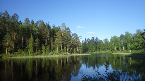 Вернёмся к лесным будням. Лесные культуры сосны, создаваемые коридорным способом, заселение стволовыми как погибших деревьев, так и деревьев 3 и 4 КСС. Тут и день рабочий кончился, солнышко стало закатываться, не совсем, всё-таки начался период белых ночей, в животе отчётливо забурчало, поэтому мы с Володей поехали на озеро кашу варить.