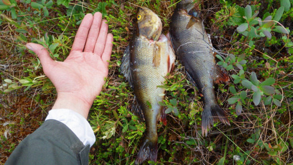 Справка для истории. В прошлом 2011 году у Володи ломает новомодный спиннинг за 2,5 тыс. рублей. Вес щуки 2,5 кг, себестоимость рыбы оценивалась такими руладами и размахами рук, что впоследствии, во всех байках рассказывалось и показывалось! В 2010 году нас сопровождает пограничник и со словами «Сейчас я её выловлю!» получает от меня спиннинг, встаёт на камень, делает заброс, этот крокодил оторвался возле ног после серии мощных рывков, в тот раз не выдержал карабин, разогнулся. Страшно подумать, что будет в 2014 году!