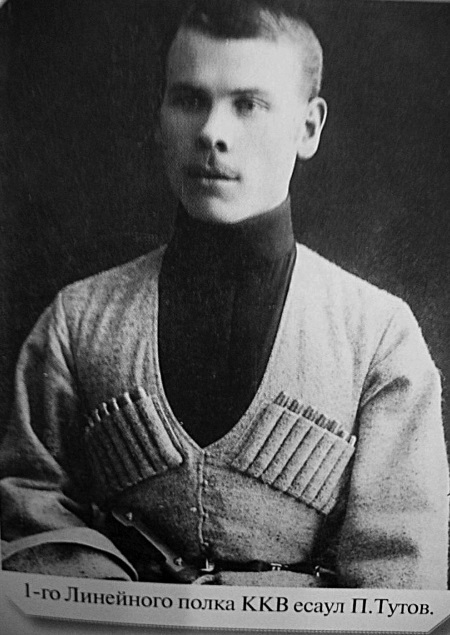 Тутов Петр Ермолаевич – казак Кубанского казачьего войска (ККВ), в Первую мировую войну – подъесаул (старшинство 4 сентября 1915 г.). Командир 4-й сотни 1-го Линейного генерала Вельяминова полка ККВ.
