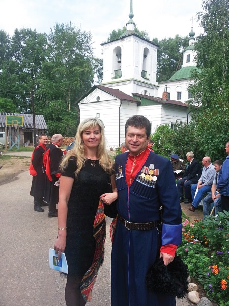 Архангельской областной казачий круг Северо-Двинской общественной организации Союза казаков России. Слева направо: Горкин Александр Ильич, атаман областной организации Союза казаков России; отец Александр; Григорьев Юрий Иванович (1941–2014) – 1-й областной атаман, советник Верховного атамана Союза казаков Росссии; Качаев Александр Викторович, директор оркестра Северного хора, донской казак; Тутов Александр Николаевич, товарищ атамана. Фото Юрия Ермолина