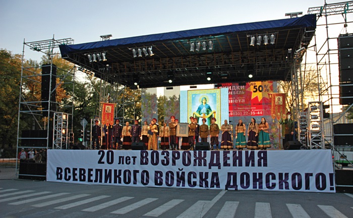 Здесь и далее размещены фотографии с празднования 20-летия возрождения Войска Донского. Основные торжества проходили в Новочеркасске. Гости наслаждались конно-спортивным праздником и скачкой на Приз атамана Войска Донского, пробовали творения участников конкурса «Донская казачья чудо-уха» и казачий кулеш с дымком.