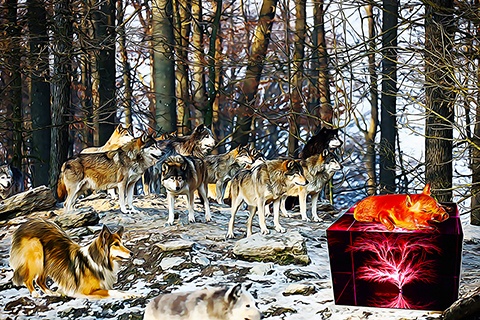 Кубическая Молния тоже оказалась добрая и общительная. Несмотря на свои угловатые формы, она просто светится обаянием! Она сразу нашла с волками общий язык, а волчат и вовсе полюбила, как собственных детей. Нянчится с ними и преподаёт азы термодинамики и электромагнетизма. А ещё благодаря ей наши волки теперь жареное и варёное мясо едят. Я достал большой чугунный казан и огроменную сковородку с тефлоновым покрытием. Мы ставим их на Кубическую Молнию, и она с удовольствием готовит быстро и вкусно. Если нужно, может и как на гриле приготовить. Теперь волки больше жареное сало предпочитают, чем сырое. Жарят его до шкварок, а потом хрустят, как чипсами.