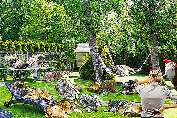 – Вот, Пестронюшка, у нас тут гости пришли. Колины друзья. Целая стая волков, а кормить их нечем. Курочки, сама знаешь, у нас сейчас все на яйцах сидят, а бройлеры ещё не выросли. Да и посмотри, какие они голодные – разве здесь курочками отделаешься? Нужно много мяса, чтобы такую ораву прокормить! Может, ты сама волков покормишь, справишься?!