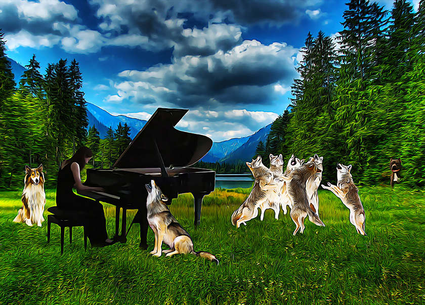 Учительница села к роялю и волчий вальс исполнила. Серомашка повыла немного и смутилась.