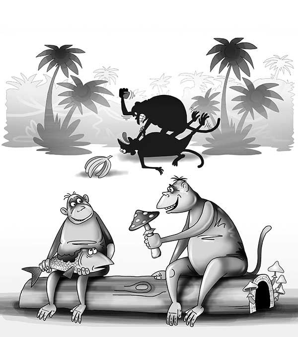 Причем, что интересно, меняются предметами или услугами в стае только равные особи, то есть стоящие в стадной иерархии примерно на одной ступени. Вожак или любая другая доминантная особь, скорее, отнимет у нижестоящего члена своей стаи то, что ему нужно. Потому что он сильнее! А равным приходится меняться.