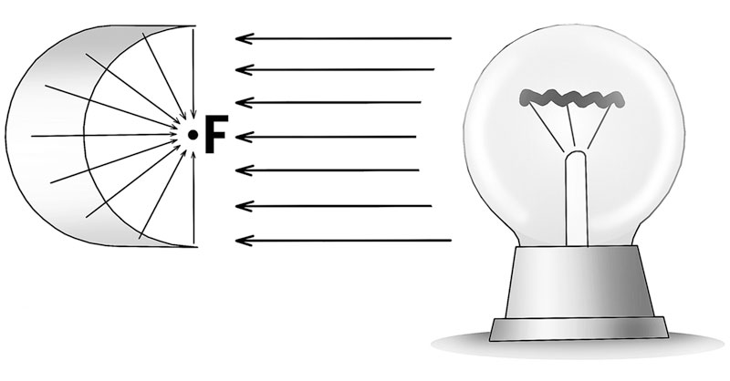 Эллипс умеет показывать фокусы! Зеркало в виде половинки эллипса соберет падающие лучи в точку фокуса.