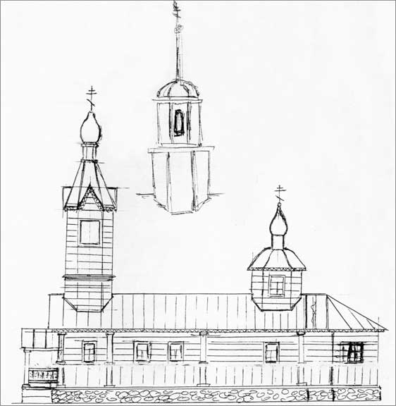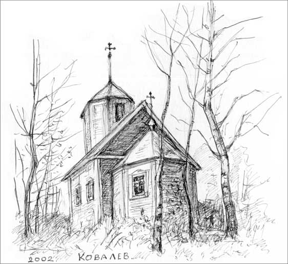 Заозерье. Церковь во имя Свт. Николая Чудотворца. 2002 г. Рисунок А. И. Ковалева