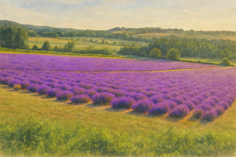 Следующее из моих любимых мест находится за Лондоном. Я часто проезжаю там, когда еду домой и не хочу ехать по трассе, предпочитаю ехать по дороге через маленькие деревушки. На трассе А225 после деревеньки Эйнсфорд, когда едешь в сторону Севенокса (Семидубья, как я его называю), по правую руку открывается очень красивый вид. Местный фермер посадил там лаванду, и когда она цветёт, получается великолепная картина. Эту красоту можно наблюдать издалека, а можно и погулять среди цветов и пофотографироваться. Парковка на обочине дороги расположена так, что с неё открывается красивый вид на местный пейзаж, где так мало лесов и много полей, одно из которых полностью закрашено фиолетовым цветом. Люблю там остановиться постоять и полюбоваться, чтобы потом продолжить путь домой, где меня всегда ждут.