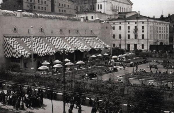 А потом они решили немного перекусить, посидев в летнем кафе «Центр» у Кузнецкого моста, уходя сделав фотографию из здания напротив.