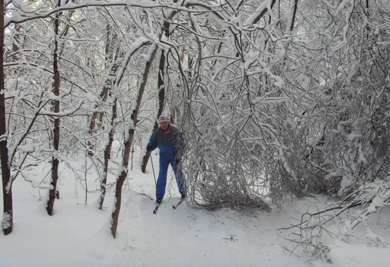 Ветки наклонившихся, словно арки, деревьев хрустальной завесой свешивались на лыжню и тропы, словно лианы, закрывая проход.