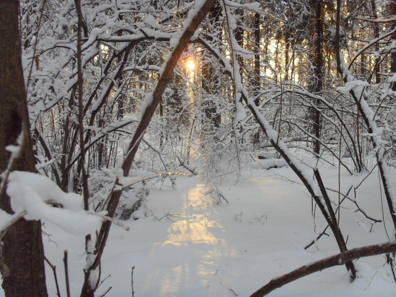 Своими лучами сквозь деревья, оно прокладывало им снежный путь.