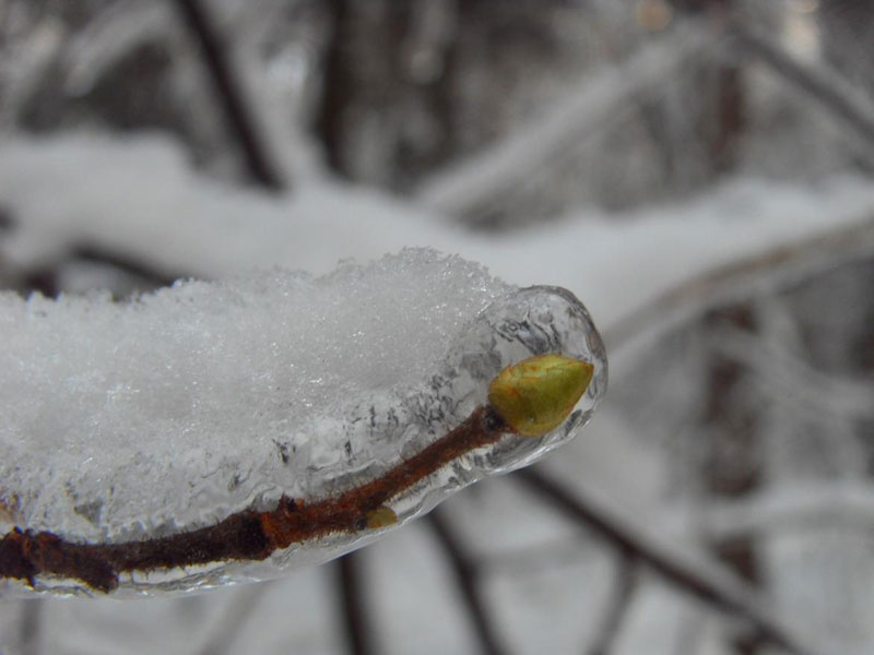 Она фотографировала набухшие подо льдом почки на ветках с разных ракурсов, пытаясь найти более интересное положение. Жена так увлеклась процессом, что замерзающий муж невольно принялся сочинять.
