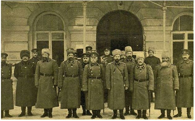 – «Вот, следите за мной! Слева направо: генерал-квартирмейстер Ставки генерал-лейтенант М.С.Пустовойтенко, начальник штаба Западного фронта генерал-лейтенант М.Ф.Квецинский, военный министр генерал от инфантерии А.А.Поливанов, главнокомандующий Западным фронтом генерал-адъютант А.Е.Эверт, начальник Морского штаба Верховного Главнокомандующего адмирал А.И.Русин, начальник штаба Верховного Главнокомандующего генерал от инфантерии М.В.Алексеев, Император Николай II-ой, и.о. начальника штаба Северного фронта генерал-майор М.Д.Бонч-Бруевич, главнокомандующий Северным фронтом генерал-адъютант А.Н.Куропаткин, главнокомандующий Юго-Западным фронтом генерал-адъютант Н.И.Иванов, начальник штаба Северного фронта генерал-лейтенант В.Н.Клембовский» – закончил он перечисление, проводя указательным пальцем по первому ряду лиц на фотографии, не забыв, стоящих чуть в глубине адмирала и бородача в очках Бонч-Бруевича.