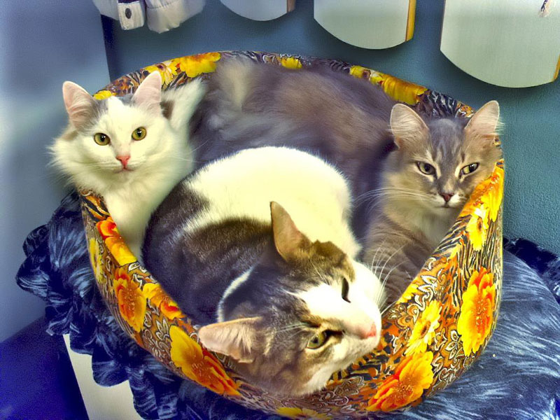 Полакомившись, две довольные морды поднимали свои слюнявые носы кверху, на шкафу ища глазами Маню. Та повторяла манипуляции, вновь угощая друзей непонятной ей по вкусу диковинкой. Когда довольные собаки, виляя хвостами, больше не поднимали своих страждущих глаз на кошку, та спрыгивала на пол, и принималась за свою забаву, гоняя фантики по полу и, в итоге, загоняя их все под диван.