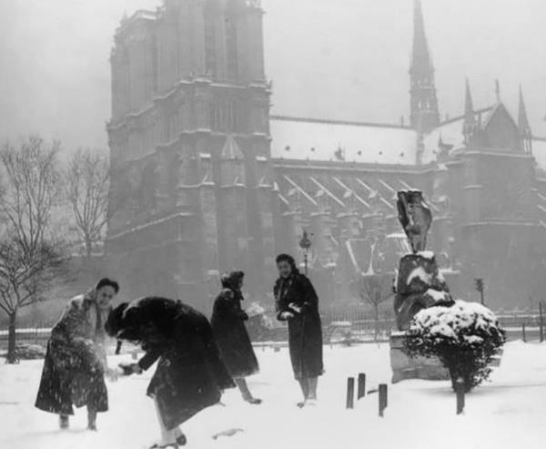 Через несколько дней супруги Кочет вместе со своими коллегами радостные вышли на зимнюю прогулку. Перейдя через мост О Дубль на улицу д Арколь при подходе к юго-западному углу знаменитого Собора Парижской Богоматери, они с удовольствием поиграли в снежки. И Пётр Петрович сфотографировал эту советскую забаву на острове Сите. Ведь эта зима в Париже выдалась весьма снежной.