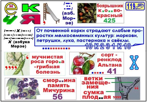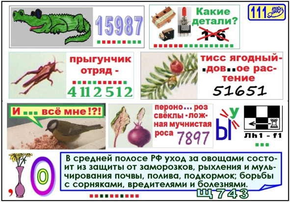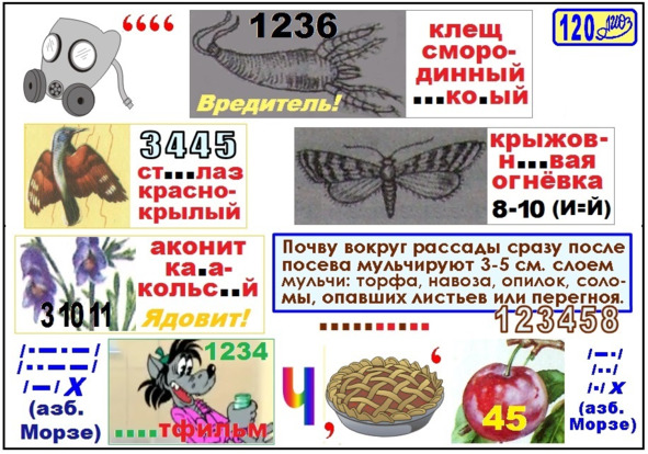 12). Овощные культуры. Особенности ухода за растениями (ребусы №111 … №118) мульчирование (ребусы №119 … №120).