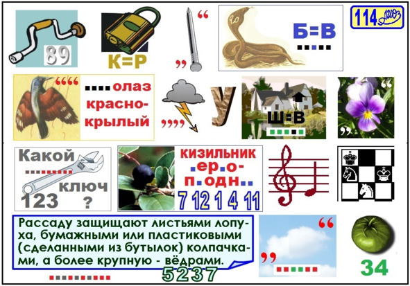 В ребусы огороднику – любителю введены некоторые правила, не встречающиеся в традиционном ребусном письме. Это сделано для увеличения степени информативности, полезности ребусов и для облегчения их разгадывания.