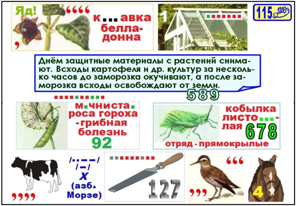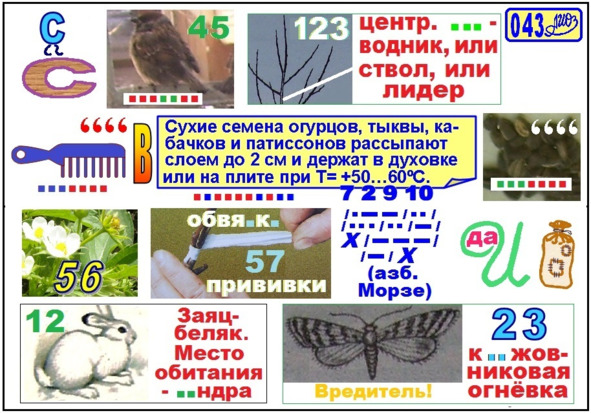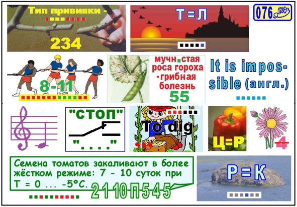 8). Биологические особенности овощных культур. Предпосевная подготовка семян. Дражирование (ребусы №071 … №073). Закаливание (ребусы №074 … №076). Дезинфекция (ребусы №077 … №080).
