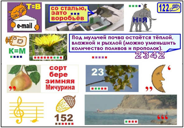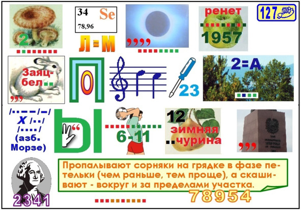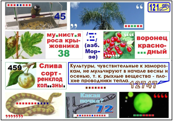 13). Овощные культуры. Мульчирование (ребусы №121 … №122), борьба с сорняками и прореживание растений (ребусы №123 … №130).