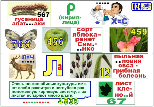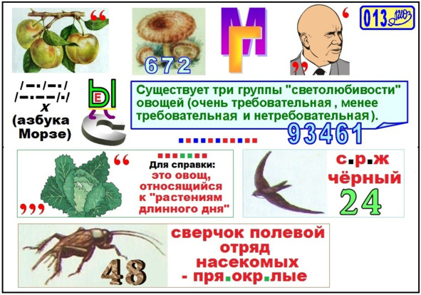 2). Биологические особенности овощных культур. Отношение к свету (ребусы №011 … №020).