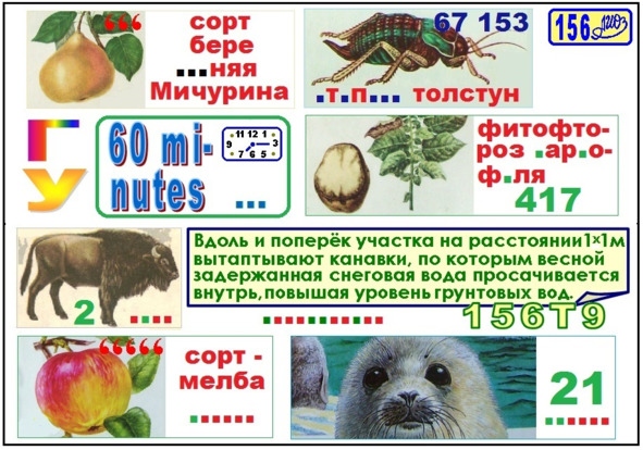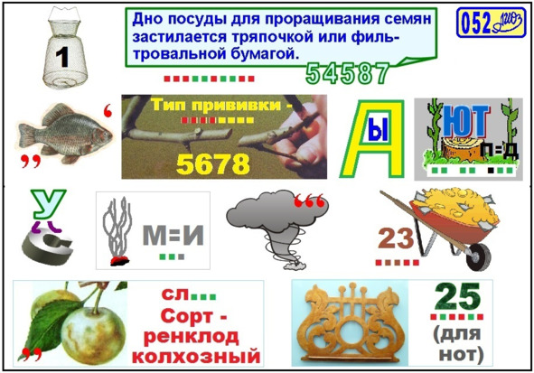 6). Биологические особенности овощных культур. Предпосевная подготовка семян. Проращивание (ребусы №051 … №060).